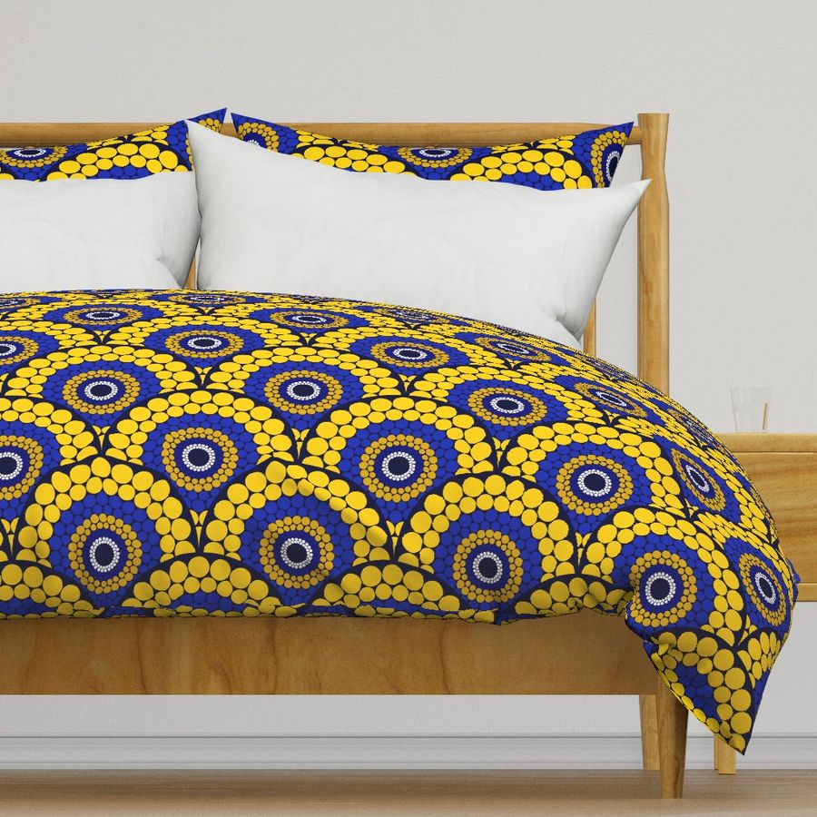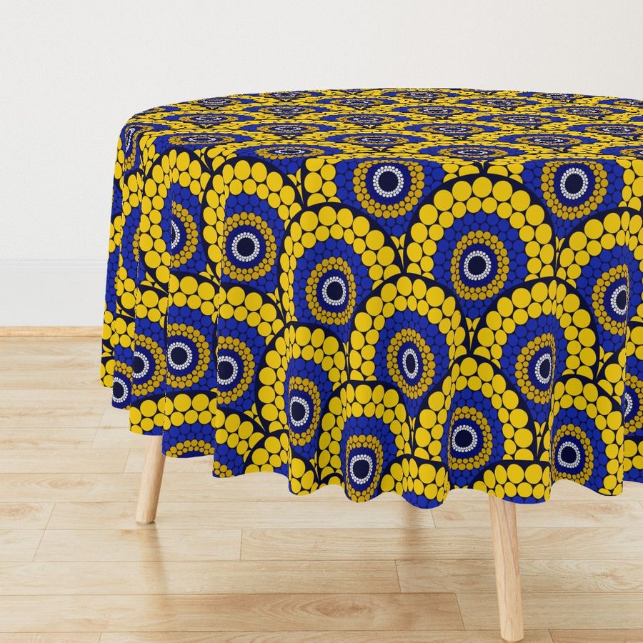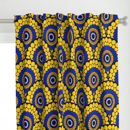Feel the art deco vibes in our abstract floral Radiant Eye of the Salamander dot mandala in a scallop pattern in our Navy and Gold color palette.