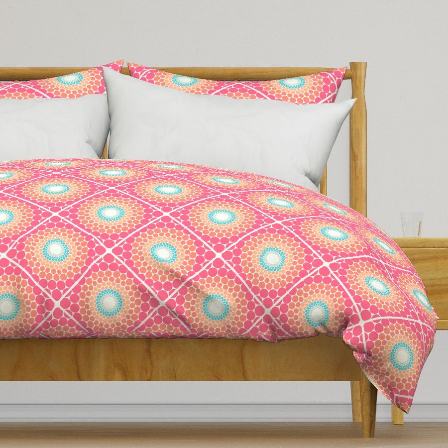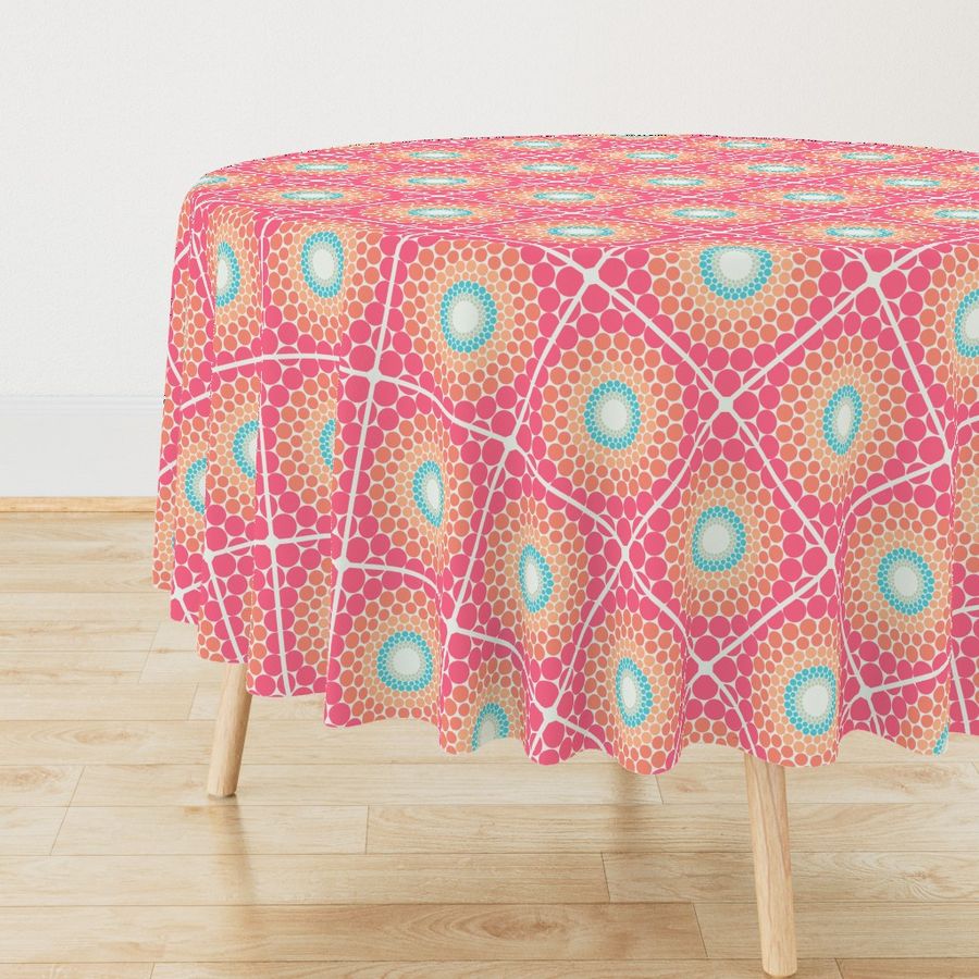 Feel the geometric vibes in our abstract floral radiant dot mandala in a diamond tile pattern using colours from our Sunset on Sea color palette.