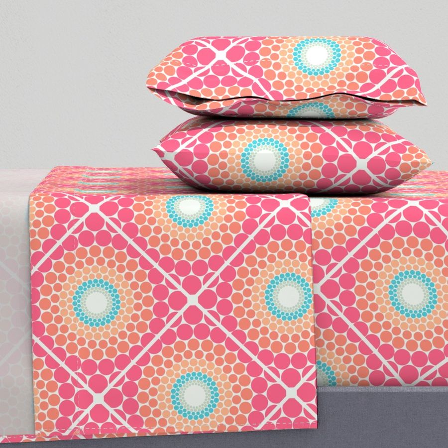 Order this Radiant Sunset on Sea dot mandala diamond tile pattern on fabric, wallpaper and home decor.