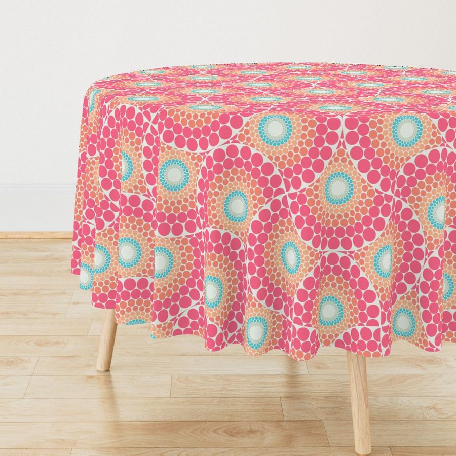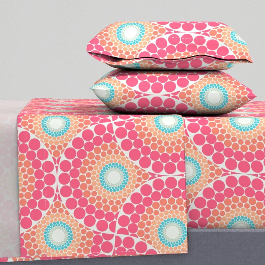 Feel the mirrored vibes in our abstract floral radiant dot mandala non-directional scallop pattern using the colours from our Sunset on Sea color palette.