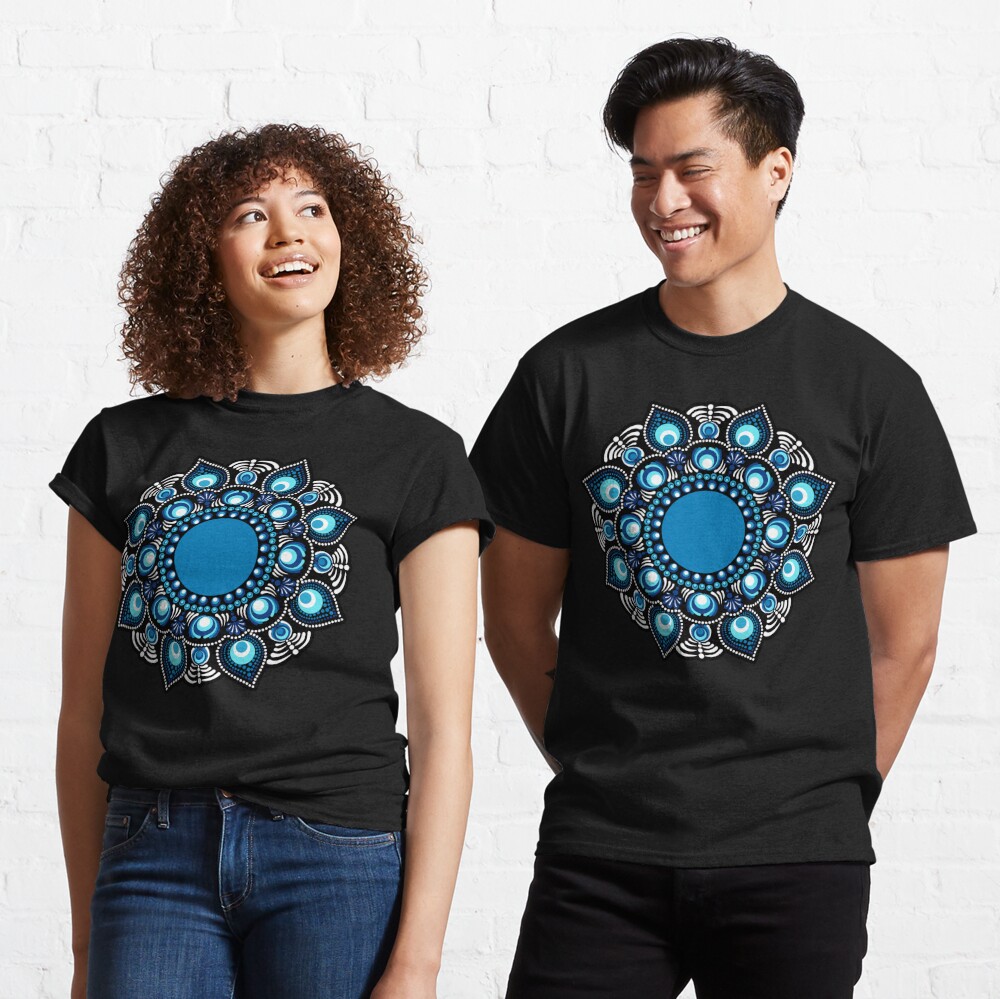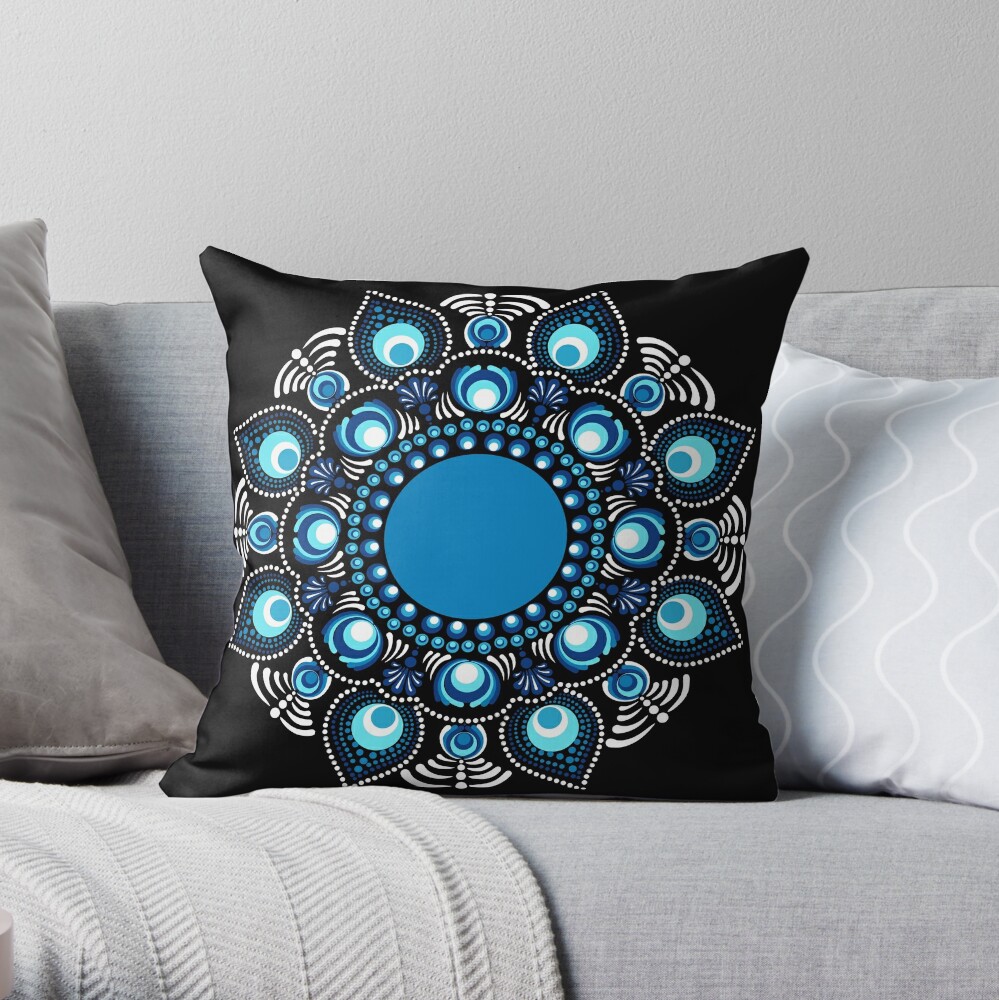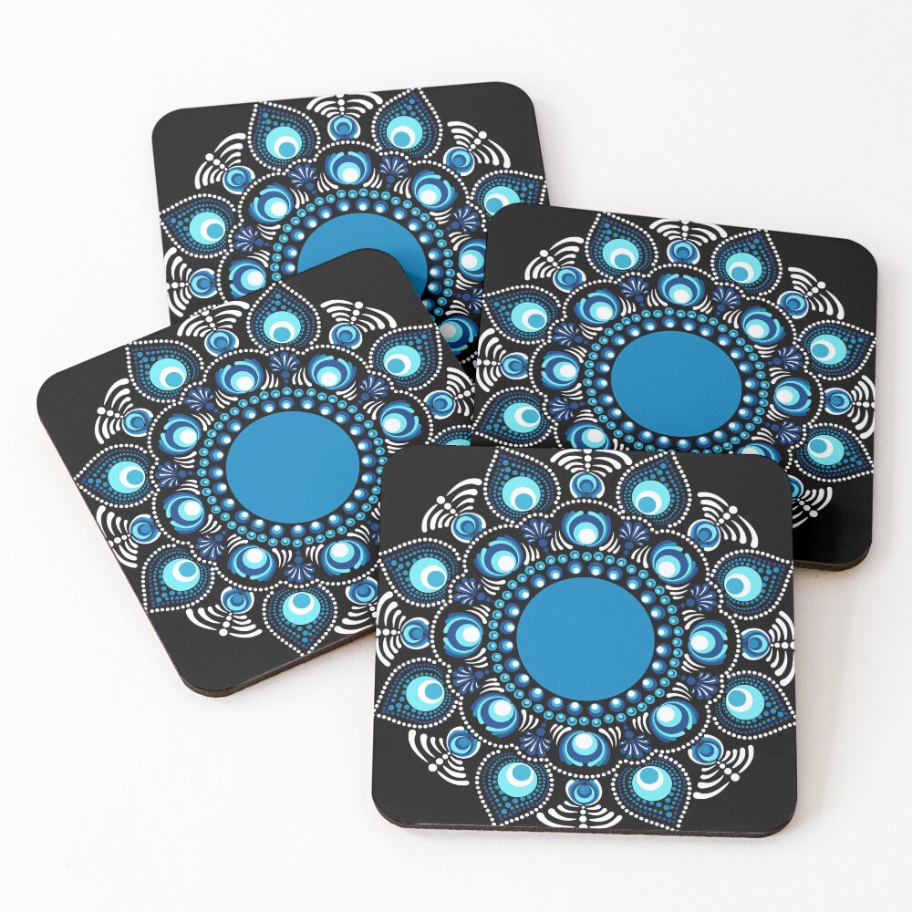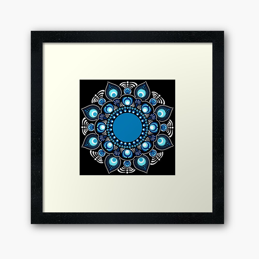 Immerse yourself in the beauty of the Fireworks over the Blue Danube Polka Dot Mandala, a stunning creation by Triplicate. This piece showcases hues of blues in an abstract floral dot mandala making a bohemian flower motif. Set in the mesmerizing Starry Night color palette this artwork radiates a serene yet bold energy, perfect for enhancing any living space.