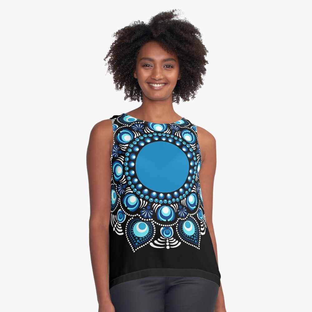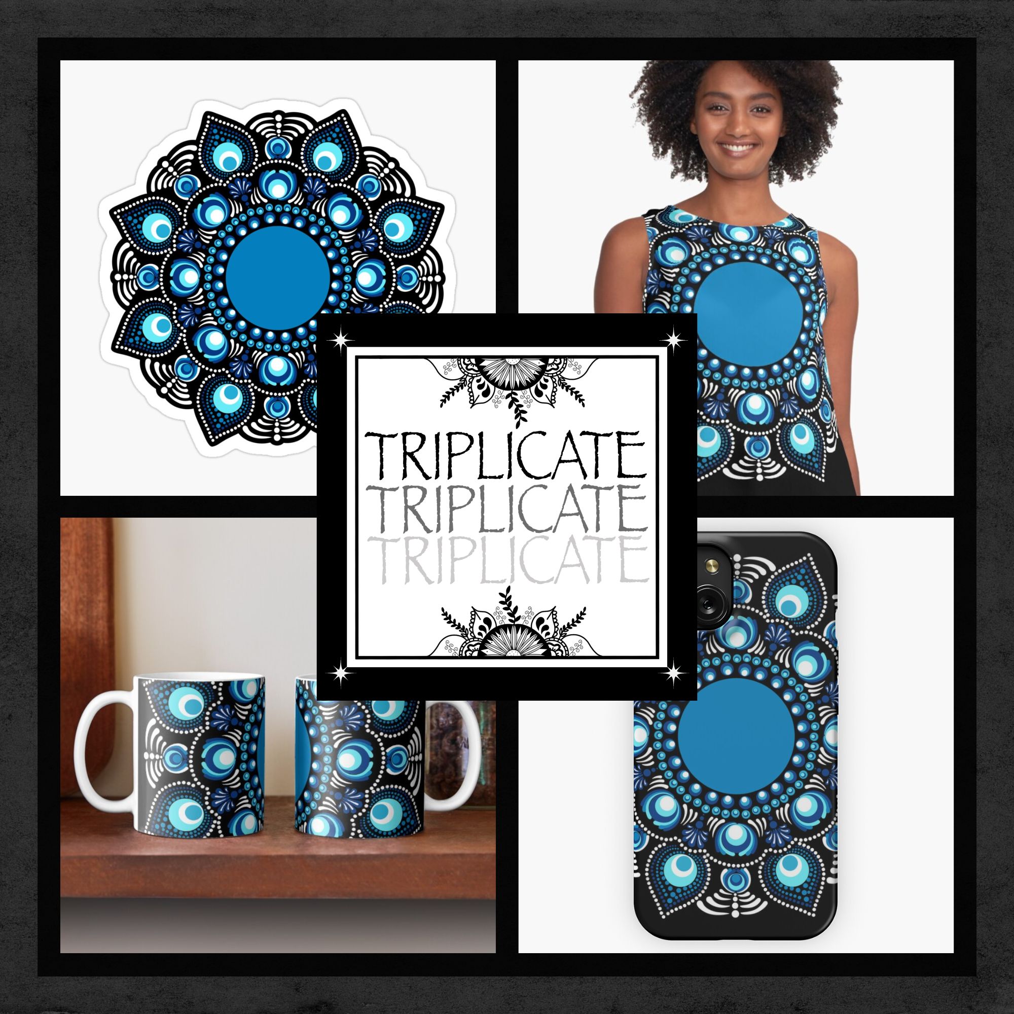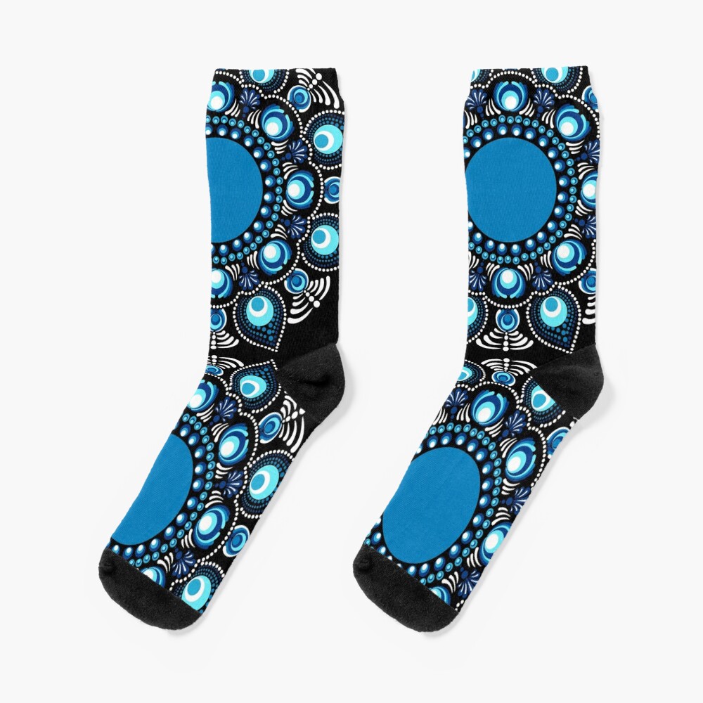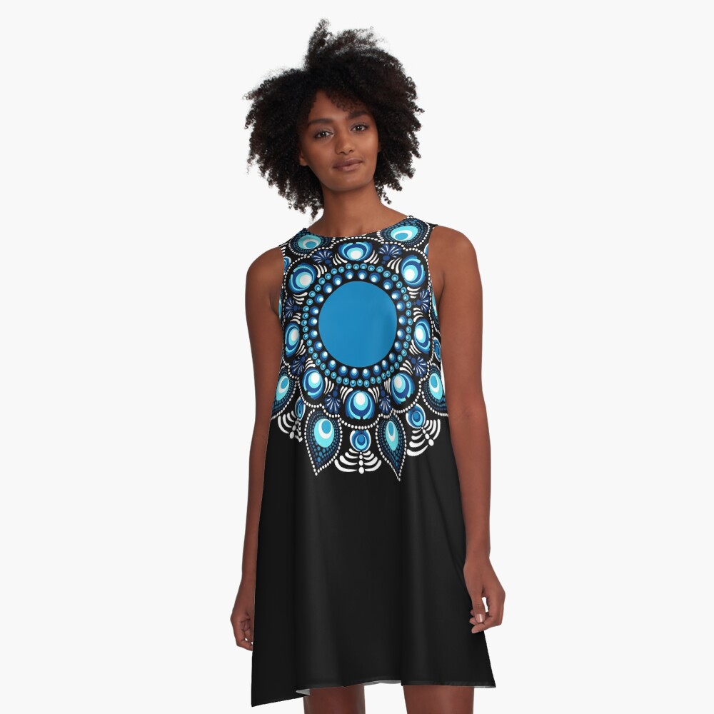 Immerse yourself in the beauty of the Fireworks over the Blue Danube Polka Dot Mandala, a stunning creation by Triplicate. This piece showcases hues of blues in an abstract floral dot mandala making a bohemian flower motif. Set in the mesmerizing Starry Night color palette this artwork radiates a serene yet bold energy, perfect for enhancing any living space.