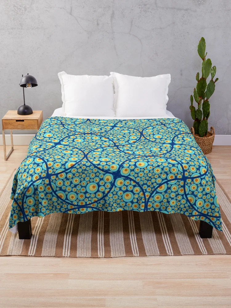 Starry Night On Sea Doodle Art Deco Ogee Fans Throw Blanket